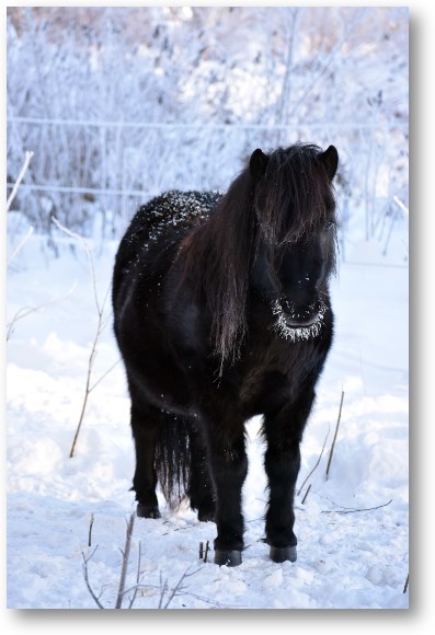 Uppfödning av svarta standardstora Shetlandsponnyer i liten skala.