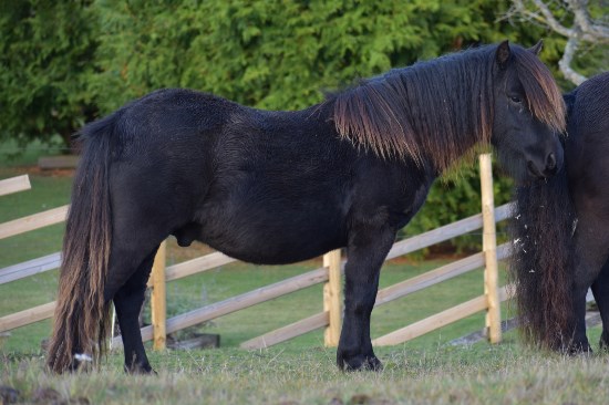 I söndags var jag och hämtade Napoleon. Jag har inte sett honom på nästan tre månader och på den tiden hade han fått en väldig massa tagel. Han var fin i hullet och har mått gott tillsammans med två kompisar hela sommaren. Napoleon gick rakt in i släpet och hemresan gick jättebra. Här hemma går han ihop med Eros och planen är kastrering. Napoleon är väldigt trevlig och inte det minsta hingstig. Han är lugn och bra mot Eros men gamlingen är sur över att inte få gå med stona. Det duger tydligen inte att ha dem på andra sidan staketet.