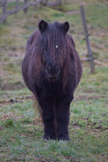 Jag har aldrig fotat mina ponnyer så lite som i år men idag hade jag med kameran till stallet. I väntan på hjälp att fota Napoleon välborstad och uppställd så blev det en hagbild på min oborstade, skäggige ettåring :)