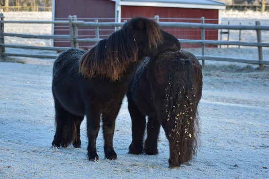 Nytt år innebär att alla hästar blivit ett år äldre. Napoleon känns dock långt ifrån en åring, han känns fortfarande som ett föl om än ett stort föl :) Han får gå med sin mamma ett bra tag till. I senaste numret av Shetlandsponnyn fanns en mycket bra artikel om avvänjning av föl. Den tog bl a upp fördelarna med att låta fölen gå med sin mor över första vintern. Den metoden använder vi oss av sedan många år och fölen har varit väldigt friska, säkerligen eftersom modersmjölken stärker deras immunförsvar.