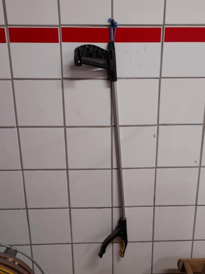 En annan sak som är bra att ha är en gripklo som är inköpt på Jula. När jag tappar saker nedanför landgången till gödselstan kan jag ta upp dem med klon och slipper hoppa ner. Man blir både klokare, klumpigare och latare med åren :)
