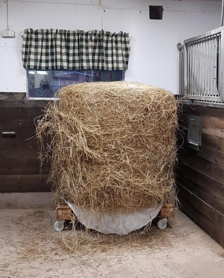 Från Djupedalens stall finns det en dörr ut till det vi kallade maskinhallen, en stor byggnad som man kan ha till lösdrift om man vill. Vi hade ena delen som maskinuppställning och andra delen till foder. Där körde vi in 6 hösilagebalar åt gången vilket räckte i minst 6 veckor. Det som var bökigt med det var dels att vi varje gång fick montera på balklon eftersom skopan användes ofta och därför var monterad på traktorn. För att köra in balarna var man också tvungen att köra i hästarnas vinterhage vilket innebar att det enklast gjordes när hästarna var intagna för kvällen och därmed fick göras i mörker. I mitt nya stall kör vi in en bal i taget och förvarar i stallet. Vi har monterat hjul på en lastpall som vi ställer i dörröppningen och sedan placerar balen på den med hjälp av traktor och balklo. Pallen rullas sedan lätt in till avsedd plats och jag kan snurra på den för att kolla åt balen från alla håll. Nu behöver jag inte använda skopan särskilt ofta så balklon kan vara monterad. Vi behöver heller inte köra i någon hästhage vilket betyder att vi kan köra in balar precis när som helst, enklast är det ju såklart i dagsljus. Hjulen till pallen köptes på Biltema för ca 70 kr/st, totalt under 300 kr för denna anordning alltså.