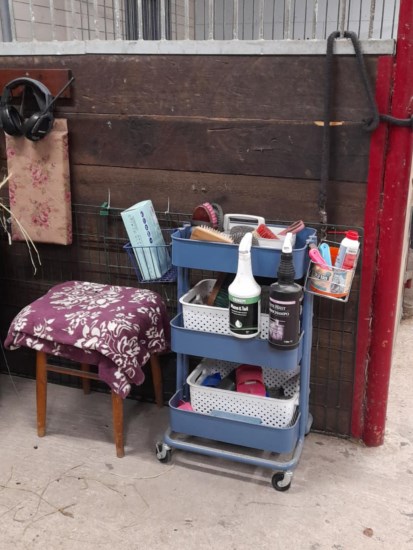 Jag har även köpt två rullvagnar på Ikea. Den ena har jag i sadelkammaren och den andra har jag borstar och andra skötselprylar på ute i stallet.