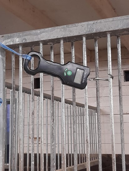 Jag väger allt hösilage till hästarna. I många år hade jag en digital hövåg köpt på Hööks. Men så hittade jag en våg på Biltema, även den digital förstås, som är mycket tydlig och bra. Pris 219 kr. Jag har hängt upp den på en bjälke i taket och när den inte används fäster jag den bara med kroken i närmaste boxgaller. Givetvis med kroken utåt så ingen häst kommer åt den, fast så högt når inte 102 cm höga Hedda ;)