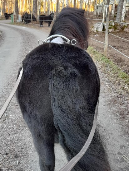 Igår tog jag ut Filippa på en promenad. Hon är en väldigt pigg och positiv ponny men jättebra skritt, precis som övriga i den stolinjen. Det gäller bara att få fram det vid utställningarna också men det skall väl gå när hon fått lite rutin.